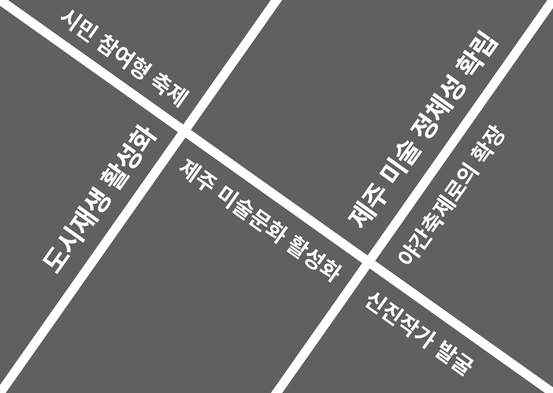 이러한 변화의 기반에는 제주를 대표하는 문화예술축제인 〈아트페스타인제주〉가 단순한 연간의 이벤트로 존재하기보다 한 해, 한 해를 거듭하며 우리 미술계가 나아가야 할 올바른 방향을 실천할 수 있는 장으로 기능했으면 하는 바람을 담았습니다. 예술가에 대한 이해와 가치가 존중되는 시스템, 예술을 매개로 시민과 소통할 수 있는 바람직한 방식에 대한 깊은 사유가 축적된 행사였으면 합니다.